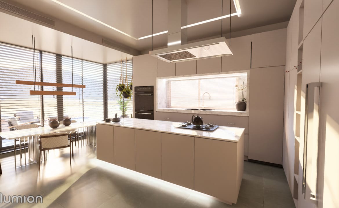 – Açık mutfak alanı – cihazlar da dahil