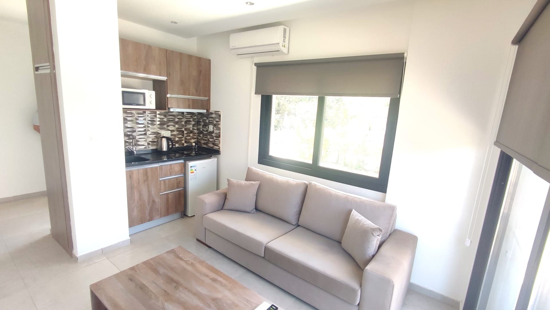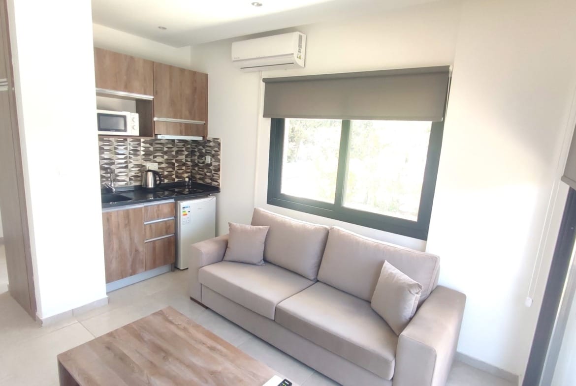 GİRNE MERKEZ’DE DAĞ VE DENİZ MANZARALI KİRALIK EŞYALI 1+1 DAİRE !!