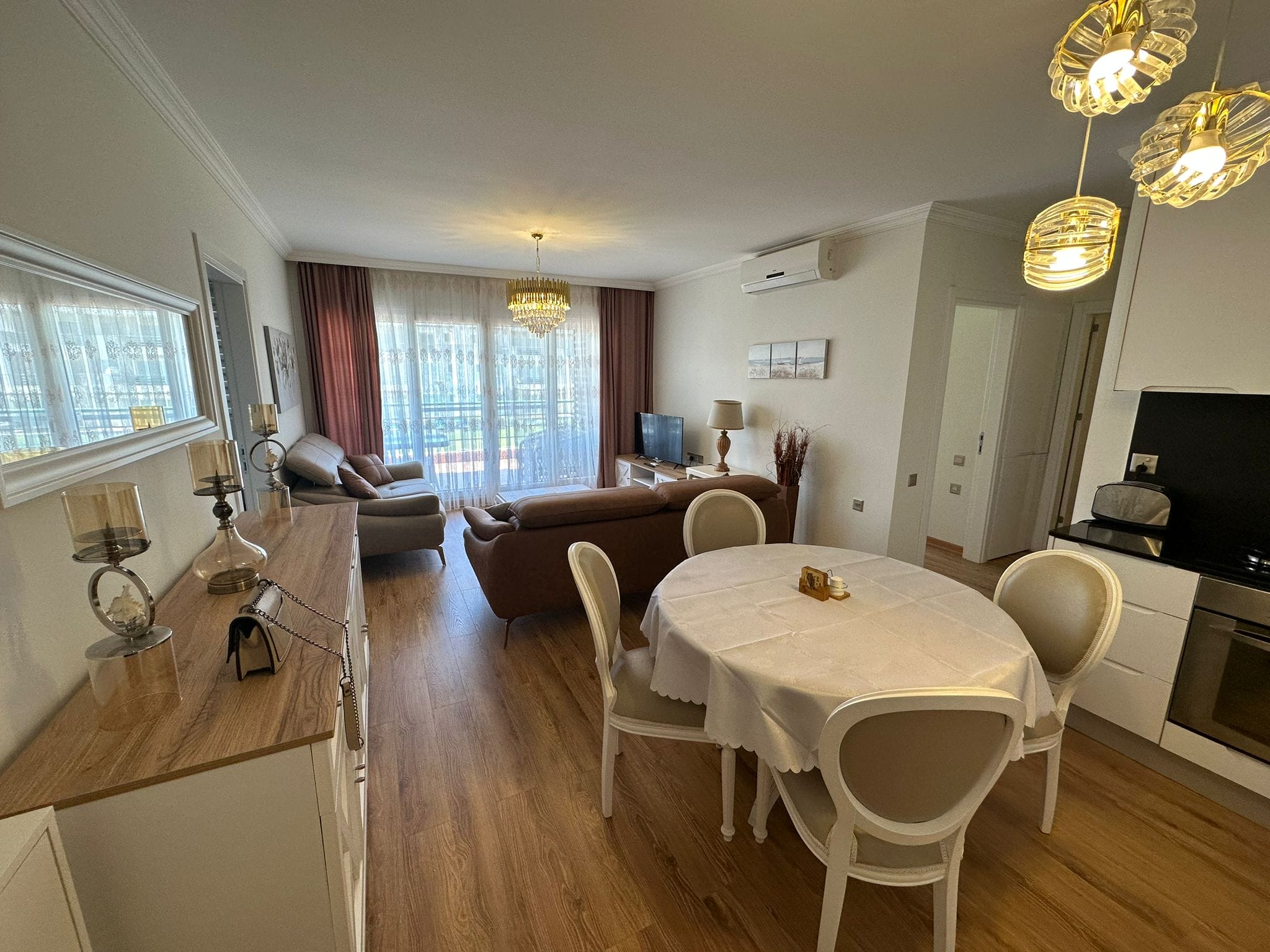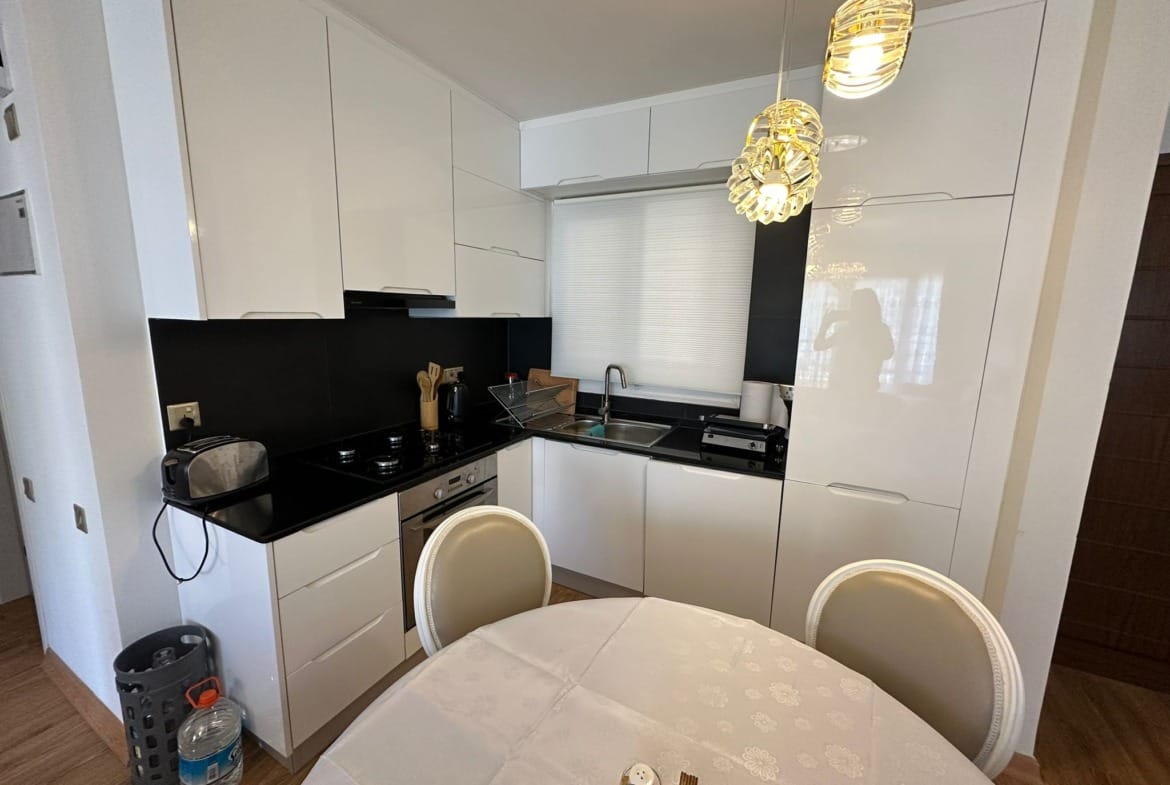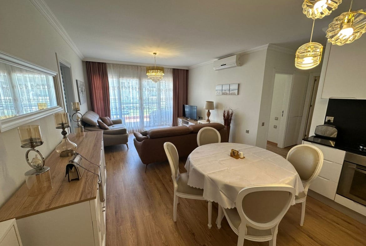 - Geniş ve aydınlık salonu, açık plan mutfak ve yemek alanıyla birlikte kullanışlı bir yaşam alanı sunuyor.