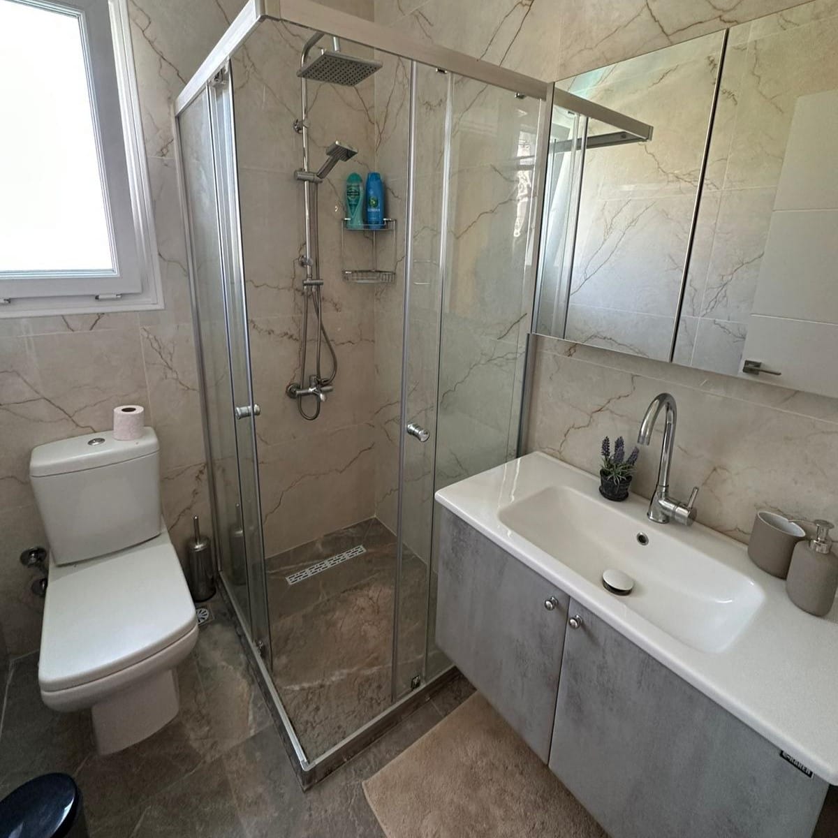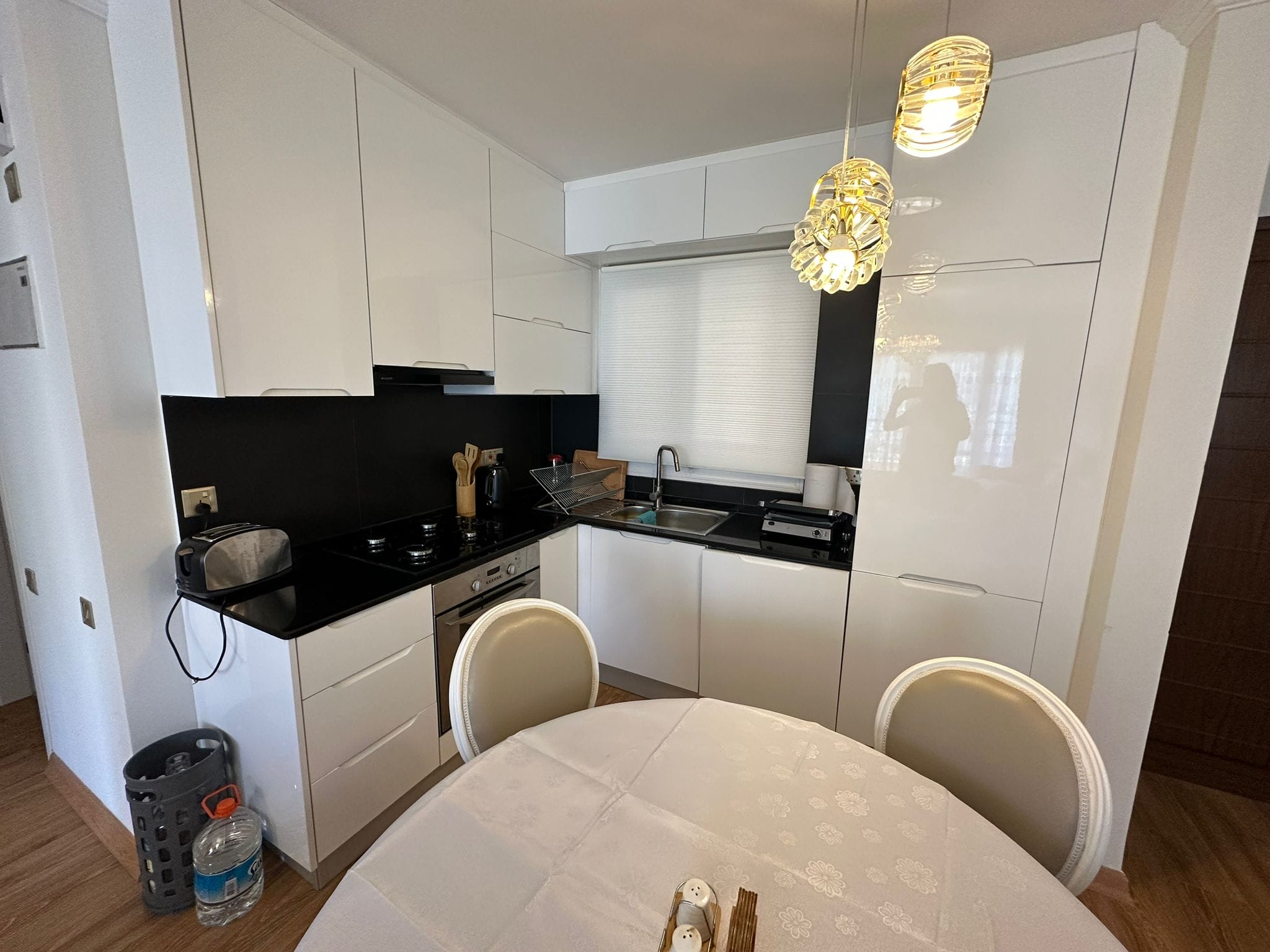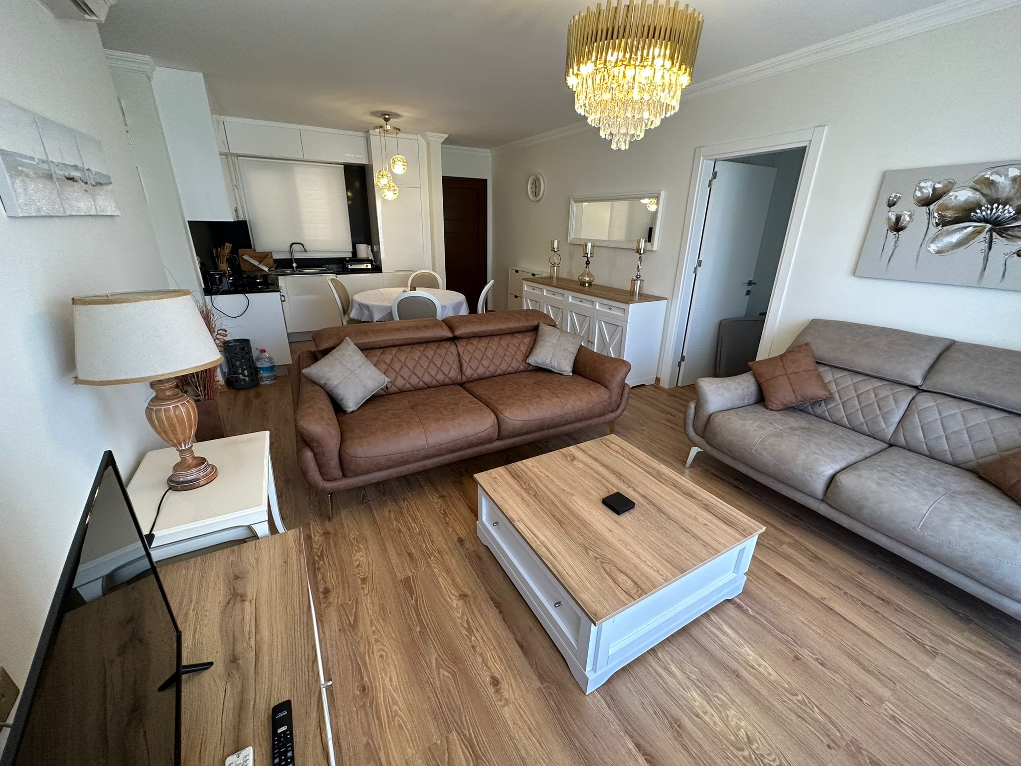 - Geniş ve aydınlık salonu, açık plan mutfak ve yemek alanıyla birlikte kullanışlı bir yaşam alanı sunuyor.