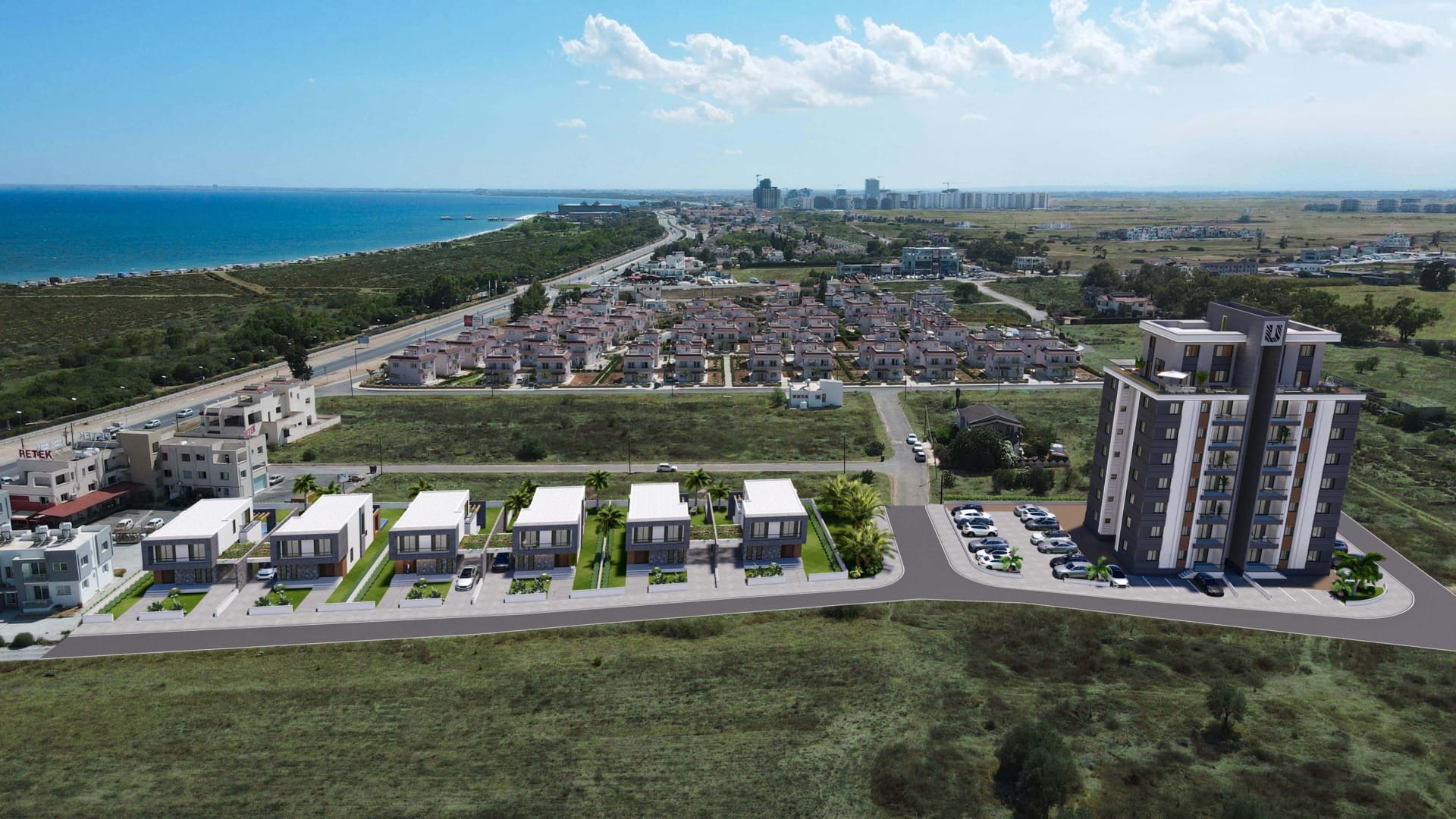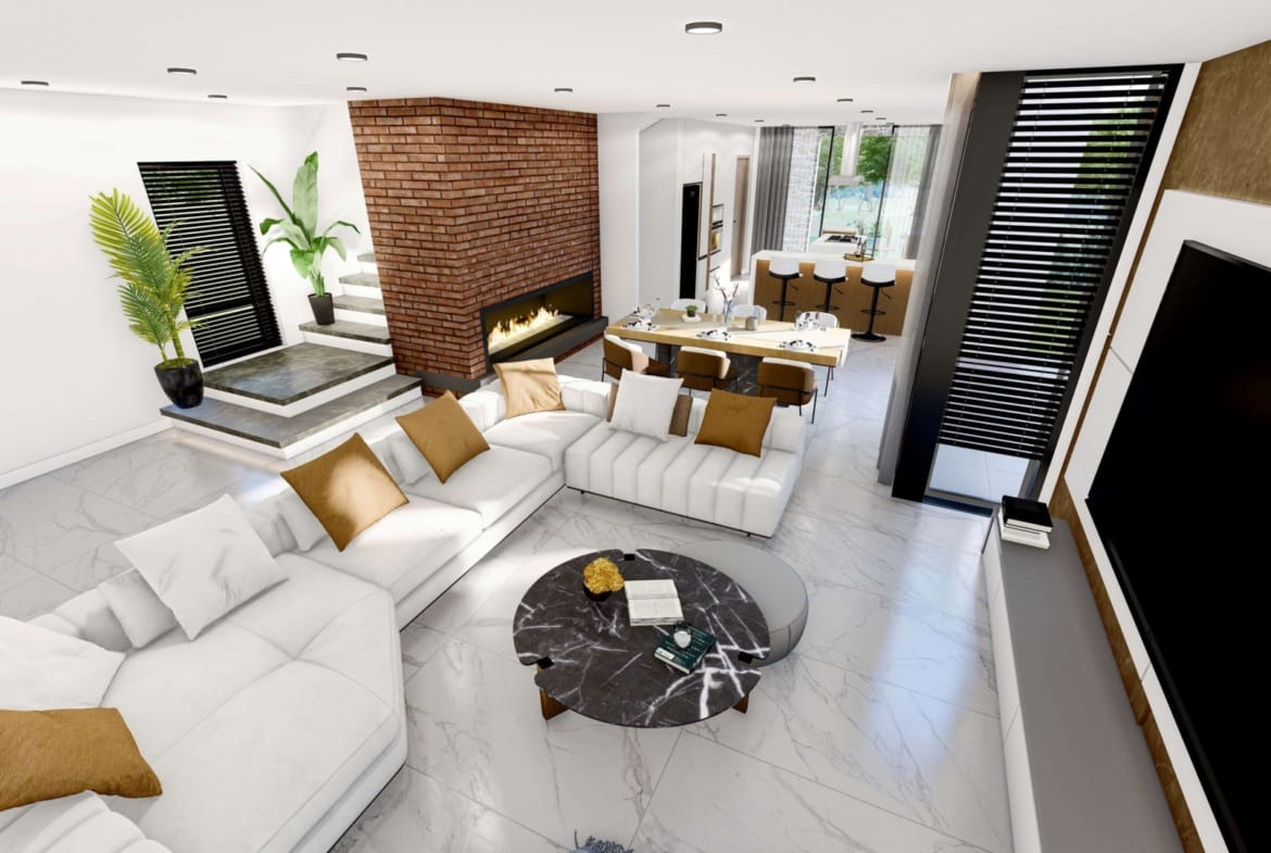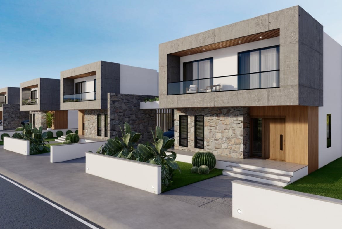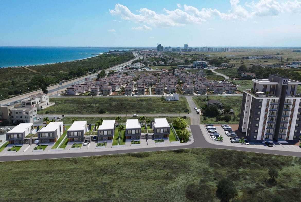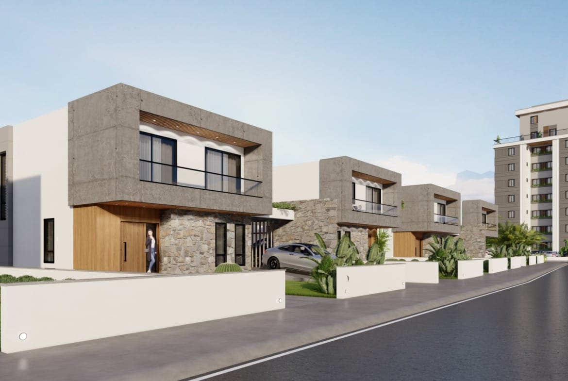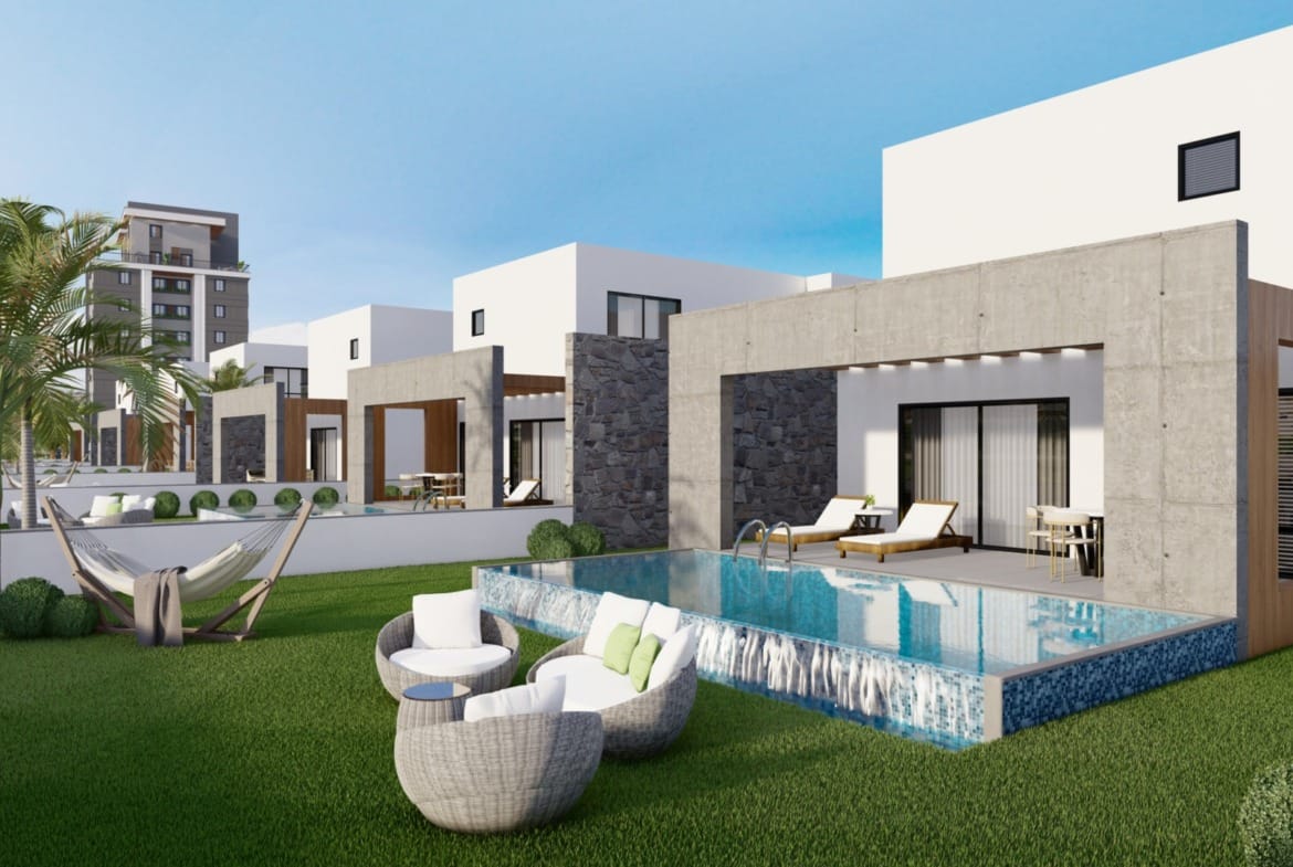 İskelenin en gözde sahil bölgesinde denise ve Merit Hotel’e 2 dakikalık yürüyüş mesafesinde havuzlu ve şömineli muhteşem satılık villalar